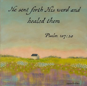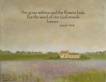A couple of years ago, I felt called to share God's Word through my art, with the intent of encouraging others. So I began pairing scripture with rural landscapes. These peaceful landscapes with their expressive skies, small cottages, stone churches, farms, and fields of flowers, seemed like the perfect match for God's reassuring words of love, hope, and peace. I am so grateful for how the Word of God lifts me and sustains me, gives me hope during the storms of life, and gives my heart a place of rest, regardless of my external circumstances. So, it is with a sense of gratitude and thanksgiving, that I share this scripture art. May it encourage and bless you, as well as those around you. May it calm your soul. May it be a gentle reminder that the Lord is always with us, and that He is always faithful. May your heart be lifted, knowing that He is always able to carry us and shelter us through any season of life.